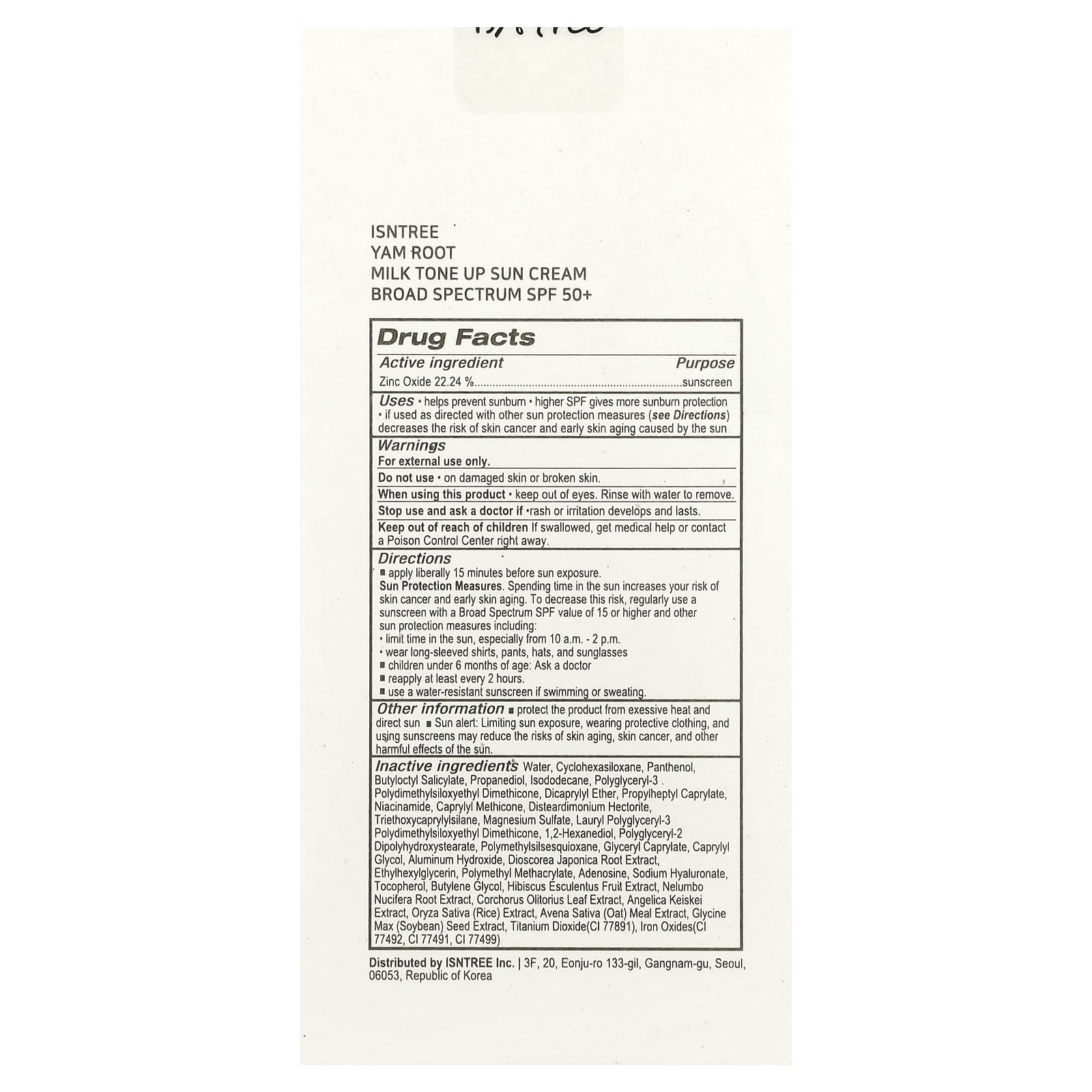 ISNtree Creme Solar Tonificador com Leite da Raiz de Inhame FPS 50+ 50 ml (169 fl oz) – ISNtree Cuidados Pessoais Protetor Solar Protetor solar facial Protetor Solar K-Beauty.