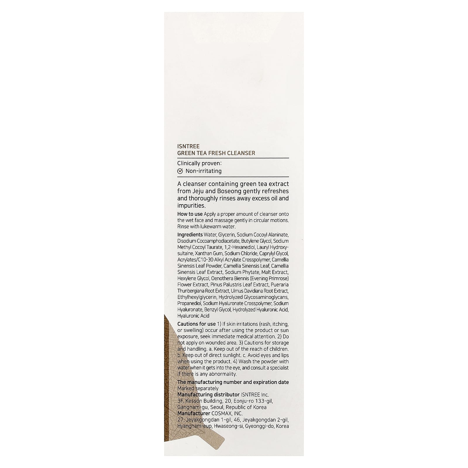 ISNtree Limpador Fresco de Chá Verde 120 ml (405 fl oz) – ISNtree Beleza Limpeza Facial Sabonetes Faciais Limpeza facial K-Beauty.