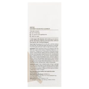 Um leite de limpeza vegano suave com extrato de Andong yam dissolve suavemente a maquiagem e as impurezas sem deixar a pele descamada.