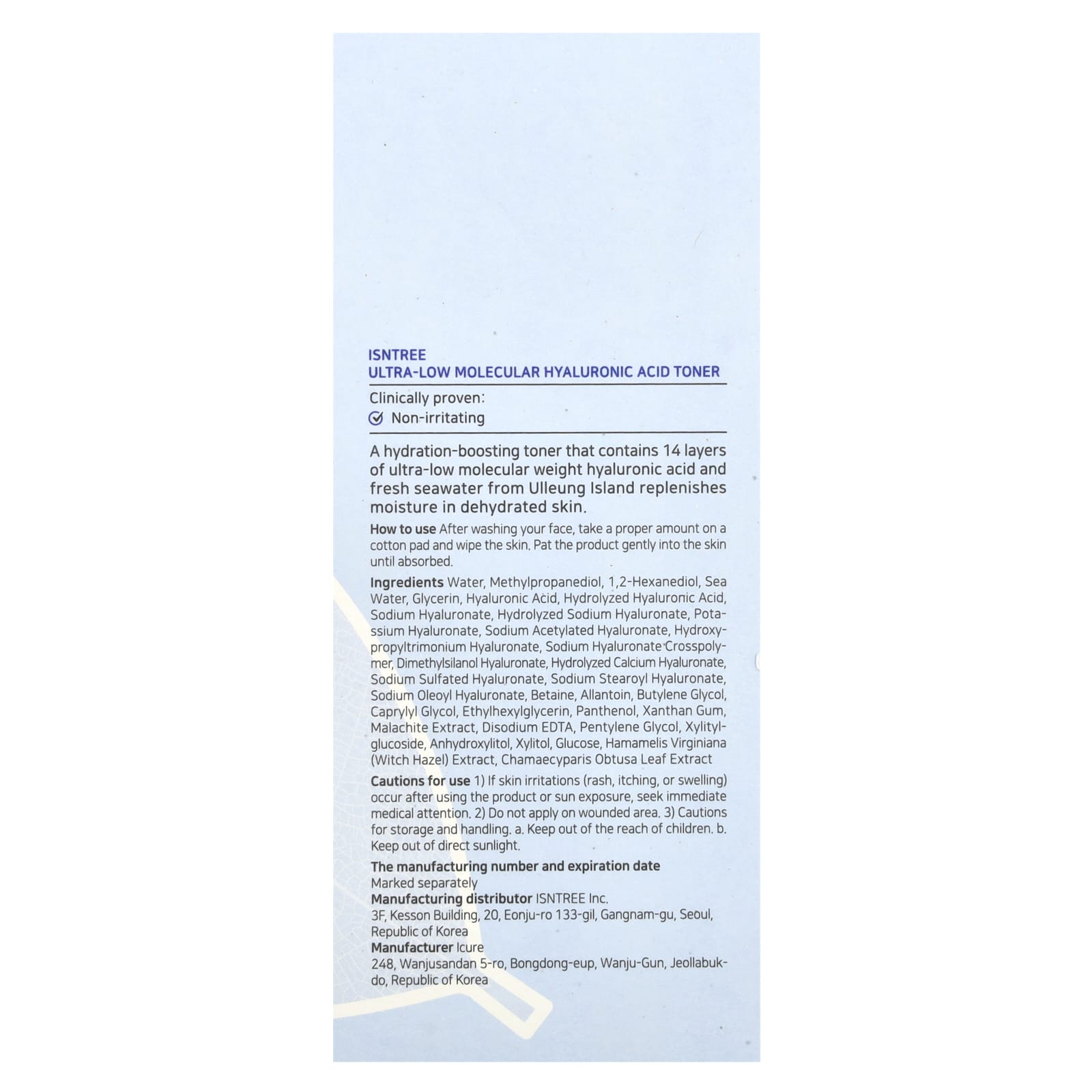 ISNtree Tônico de Ácido Hialurônico Ultra-baixo Molecular 300 ml (1014 fl oz) – ISNtree Beleza Limpeza Facial Loções tônicas Tônicos faciais K-Beauty.