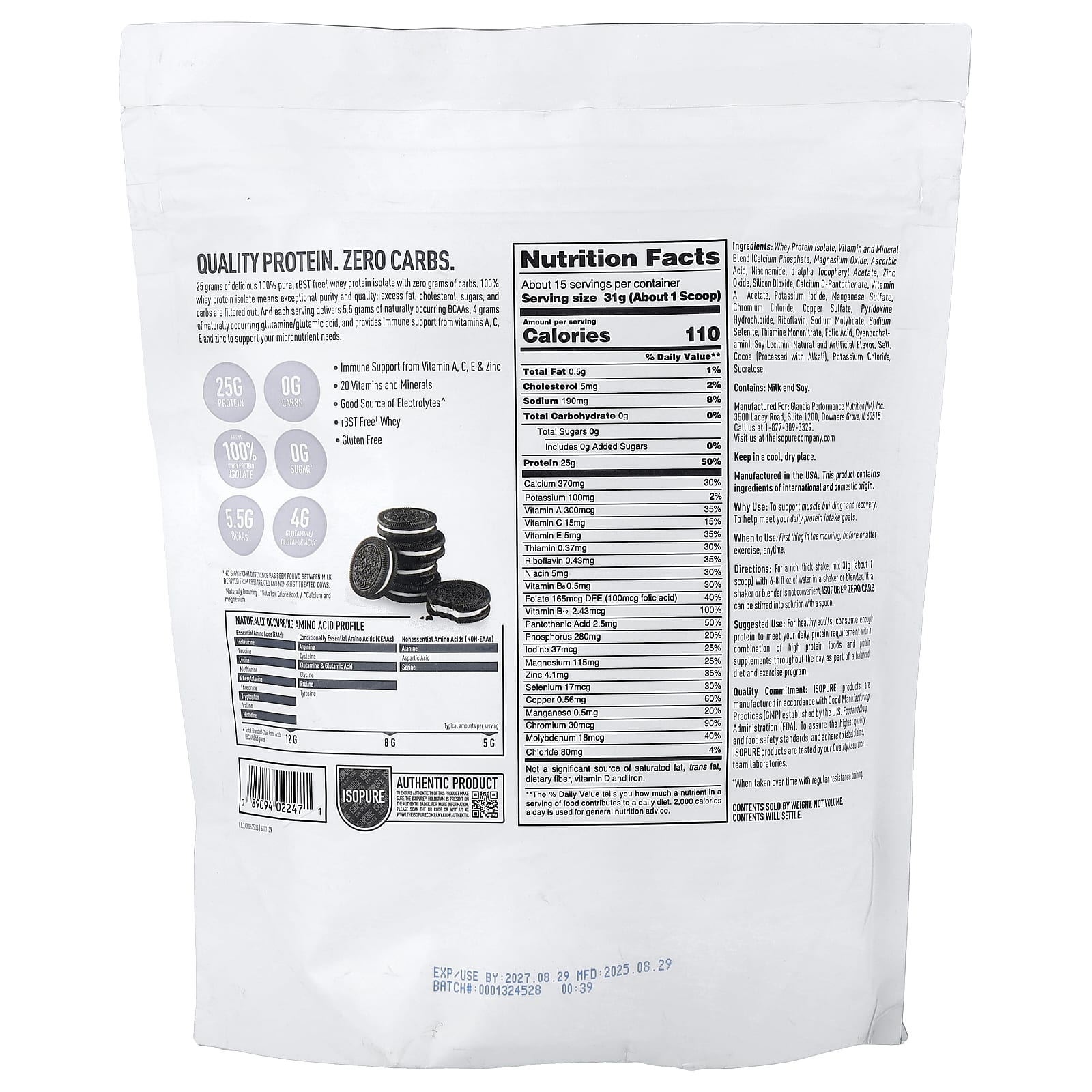Isopure Proteína em Pó com Zero Carboidratos Biscoitos e Creme 454 g (1 lb) – Isopure Nutrição Esportiva Proteína Proteína Whey Isolado protéico de soro de leite.