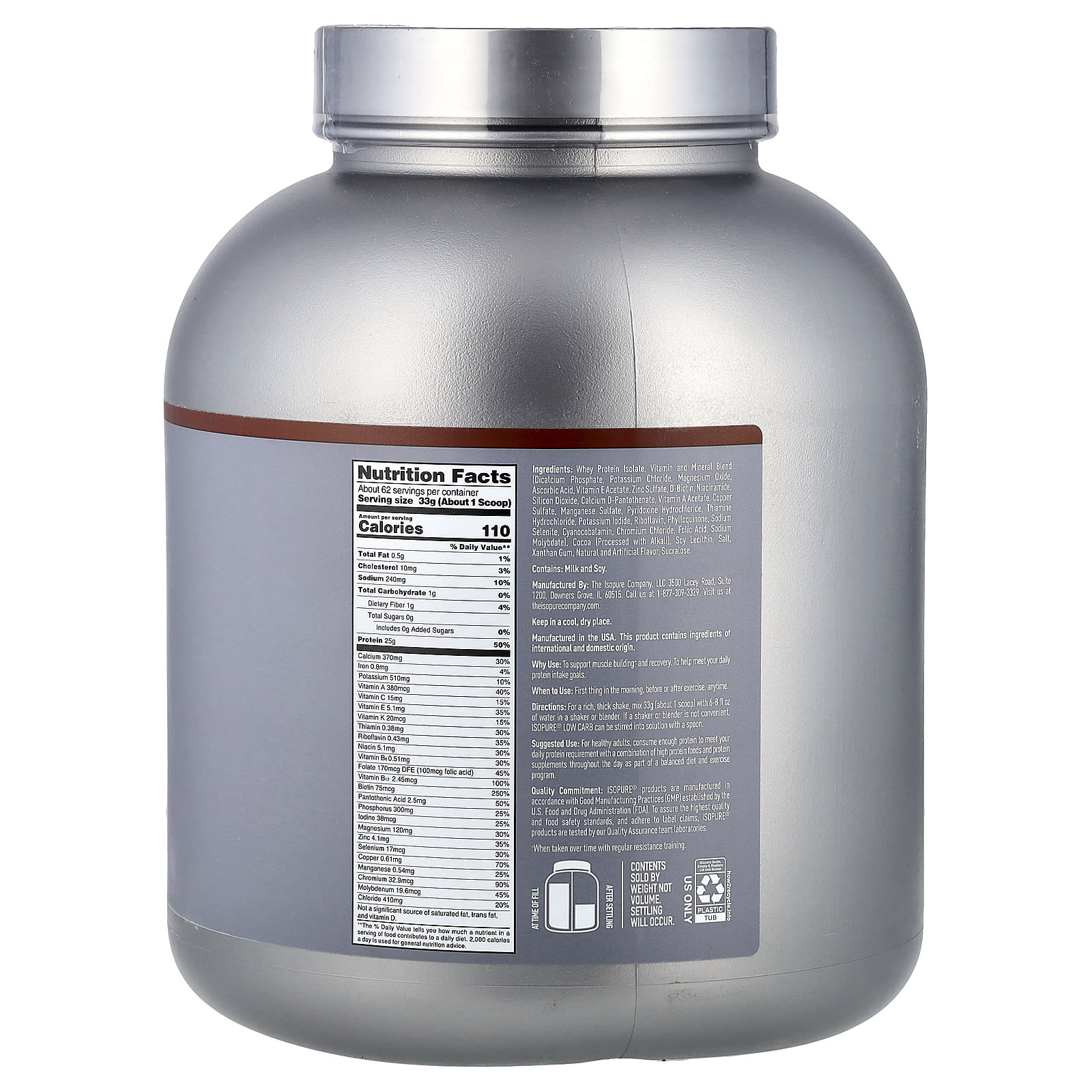Isopure Proteína em Pó Low Carb Chocolate Holandês 204 kg (45 lb) – Isopure Nutrição Esportiva Proteína Proteína Whey Isolado protéico de soro de leite.
