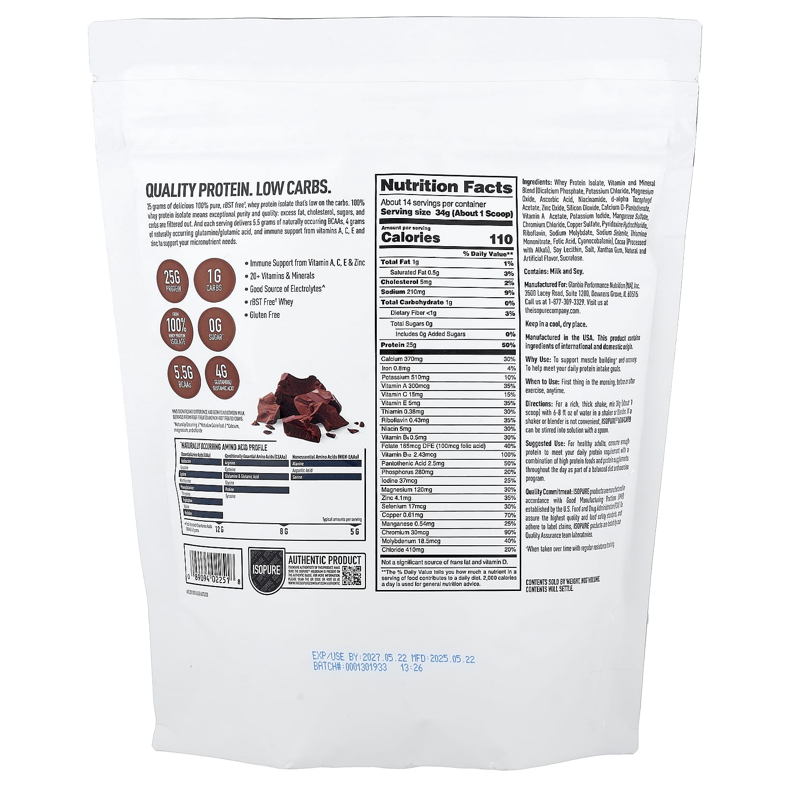 Isopure Proteína em Pó Low Carb Chocolate Holandês 476 g (104 lb) – Isopure Nutrição Esportiva Proteína Proteína Whey Isolado protéico de soro de leite.