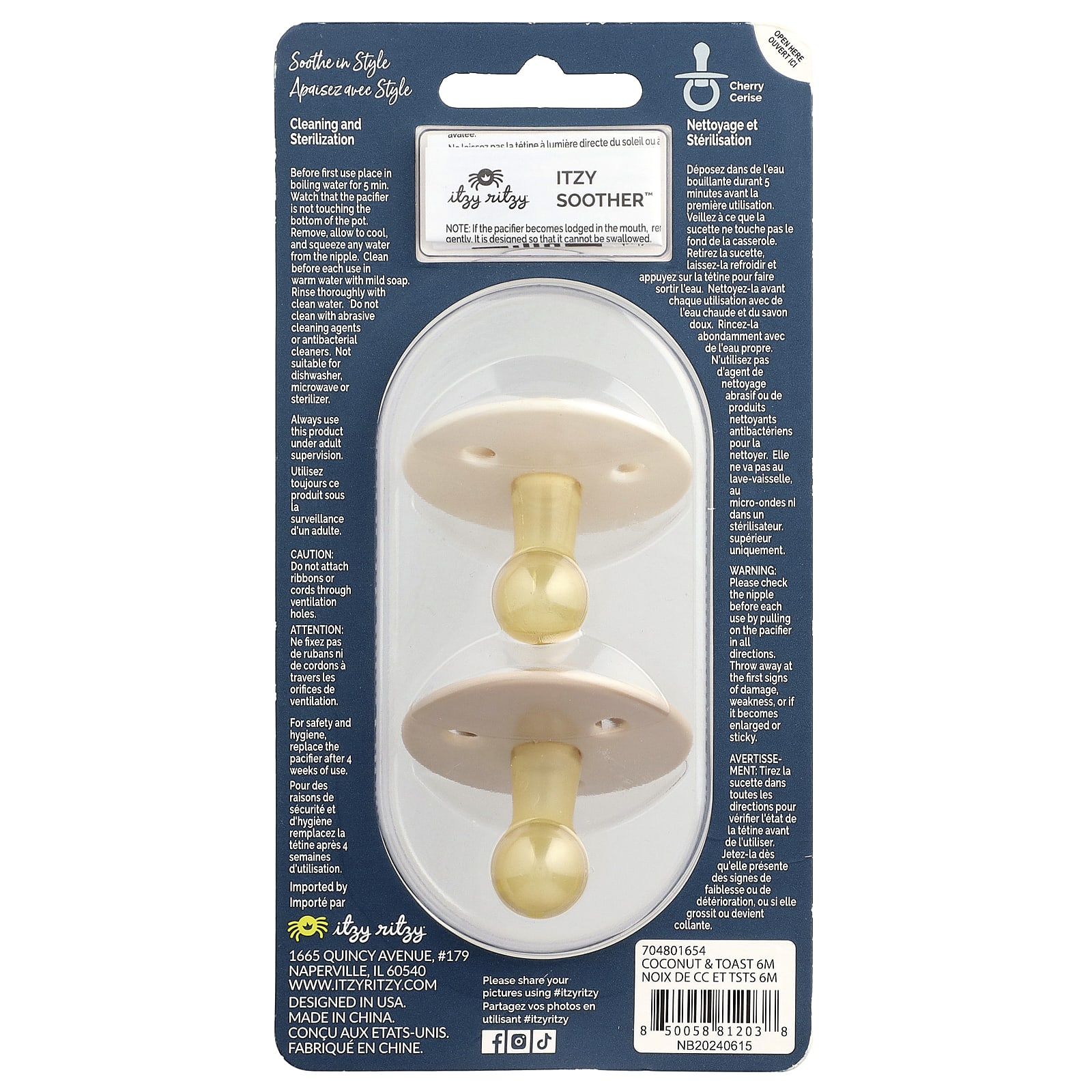Conheça a Chupeta de Borracha Natural Itzy Soother™! Cada bico de borracha natural tem o formato de cereja para imitar a amamentação e é complementado por uma alça em formato de cabo. Duplamente calmante, cada conjunto embalado inclui duas cores complementares, sem BPA e atende aos padrões de segurança da ASTM. A tranquilidade (e as vibrações refrescantes!) são restauradas para sua fofinha!