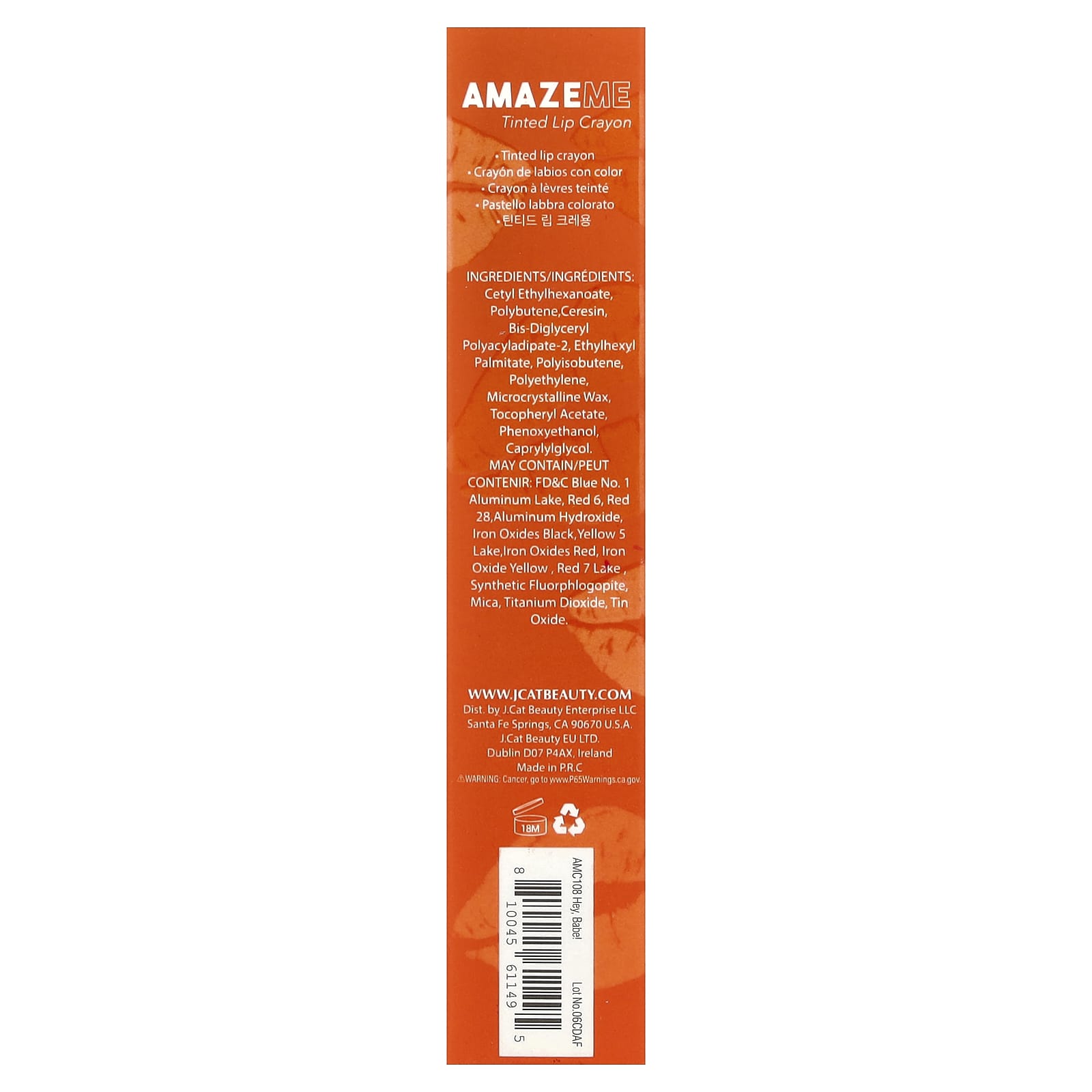J.Cat Beauty Amaze Me Lápis Labial com Cor AMC108 Hello Babe! 4 g (014 oz) – J.Cat Beauty Cuidados Pessoais Lábios Bálsamo Labial Protetor Labial com Cor.
