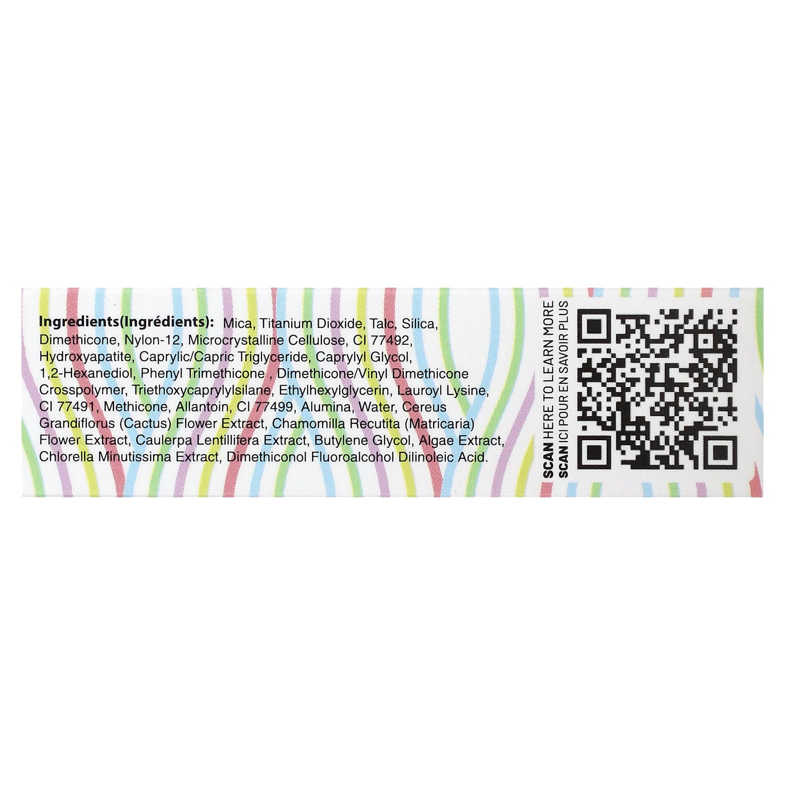 Mica, dióxido de titânio, talco, sílica, dimeticona, náilon-12, celulose microcristalina, CI 77492, hidroxiapatita, caprylic/capric triglyceride, caprylyl glycol, 1,2-hexanediol, phenyl trimethicone , dimethicone/vinyl dimethicone crosspolymer, triethoxycaprylylsilane, ethylhexylglycerin, lauroil lisina, CI 77491, meticona, alantoína, CI 77499, alumina, água, extrato da flor de Cereus grandiflorus (cacto), extrato da flor de Chamomilla recutita (matricária), extrato de Caulerpa lentillifera, butilenoglicol, extrato de algas, extrato de Chlorella minutissima, dimeticonol, fluoroálcool, ácido dilinoleico.