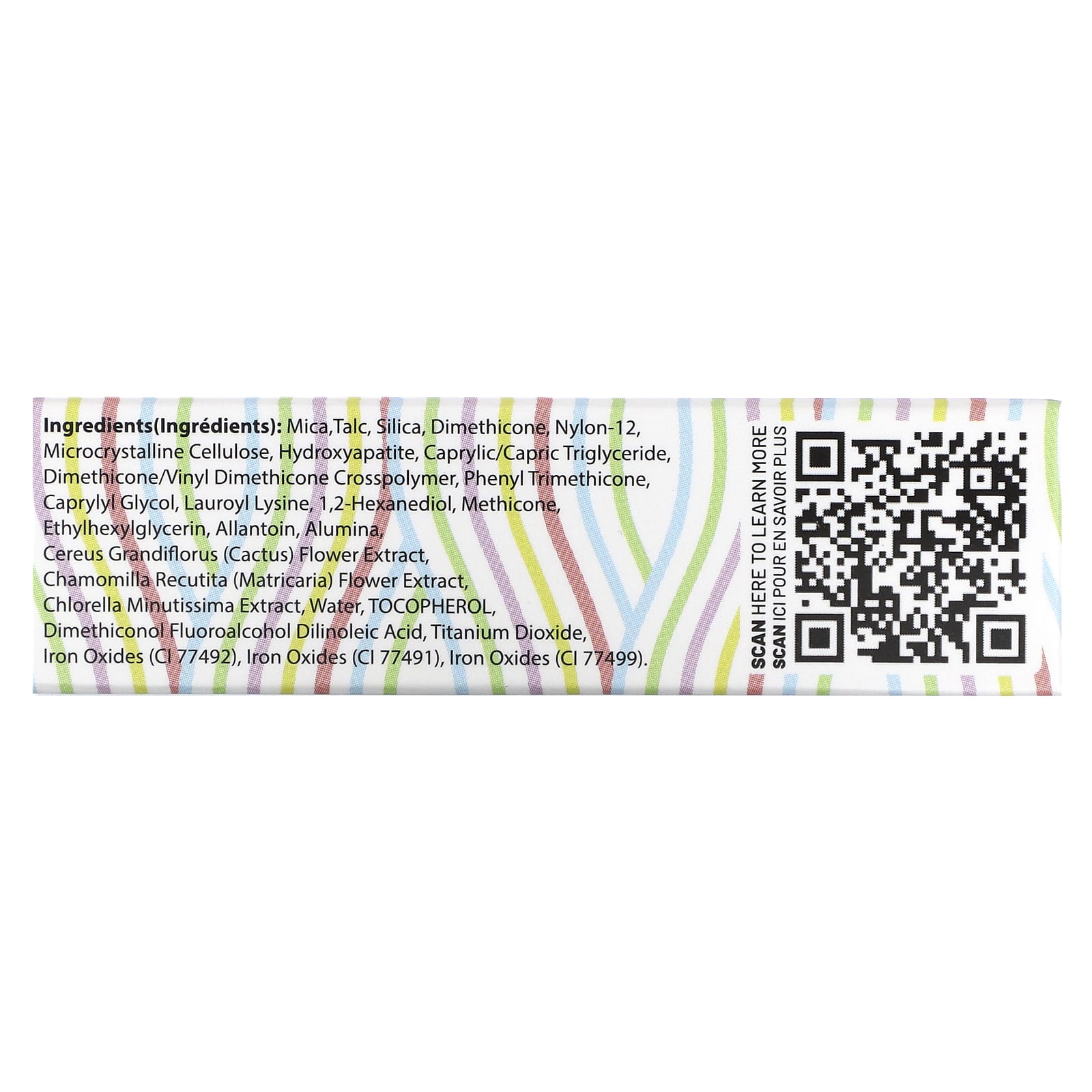 Mica, talco, dióxido de silício, dimeticona, náilon-12, celulose microcristalina, hidroxiapatita, caprylic/capric triglyceride, dimethicone/vinyl dimethicone crosspolymer, phenyl trimethicone, caprylyl glycol, lauroil lisina, 1,2-hexanediol, meticona, ethylhexylglycerin, alantoína, alumina, extrato da flor de cereus grandiflorus (cacto), extrato da flor de Chamomilla recutita (matricária), extrato de Chlorella minutissima, água, tocoferol, dimeticonol, fluoroálcool e ácido dilinoléico, dióxido de titânio, óxidos de ferro (CI 77492), óxidos de ferro (CI 77491), óxidos de ferro (CI 77499).