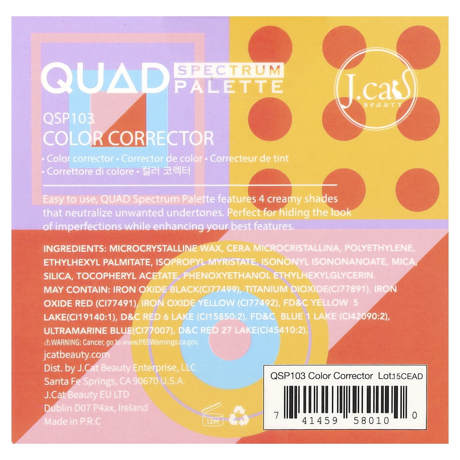J.Cat Beauty Corretivo de Cores na Paleta Facial QUAD Spectrum QSP103 6 g (021 oz) – J.Cat Beauty Beleza Maquiagem Rosto Corretivo.
