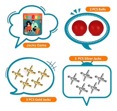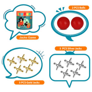 O jogo Jacks é um jogo clássico de infância, mas também uma opção de jogo divertida para atividades ao ar livre, atividades em grupo, atividades familiares, seja sozinho ou várias pessoas possam jogar. O jogo Jacks trará muita alegria e diversão. O jogo retrô Jacks é um favorito nostálgico, assim como o jogo clássico Tiddlywinks entre crianças e adultos. O jogo de macacos é um jogo que crianças e adultos dos anos 50 a 80 jogam há gerações. – Jogo Retro Jacks para crianças e adultosDesfrute dos prazeres simples dos brinquedos da velha escola com este clássico jogo de tabuleiro. Nosso jogo de macacos vintage é fácil de aprender e jogar, o que o torna um ótimo complemento para qualquer noite ou festa de jogos em família. – Portátil e conveniente. Leve seu jogo de macacos com você aonde quer que vá! Nossa linda embalagem inclui 5 conectores de metal dourado e 5 prateado e 2 bolas de borracha vermelhas, facilitando o armazenamento e o transporte. Esteja você em casa, na praia ou acampando, você pode começar um jogo com a família e os amigos a qualquer momento. – Old Fashion Family GameVolte no tempo com nosso divertido jogo de tabuleiro vintage dos anos 50 e 80! Riam e brinquem juntos em família, criando memórias que durarão por toda a vida. Além de ser uma ótima maneira de passar tempo juntos, também ajuda as crianças a exercitarem a coordenação olho-mão e a reação corporal. – Opção de aniversário para meninas e meninos. Este lindo jogo de bolas embrulhadas é o presente de Natal ou aniversário perfeito para meninos e meninas de 8 a 12 anos. É uma ótima maneira de promover o desenvolvimento intelectual e as habilidades sociais. Eles vão adorar este conjunto de jogos vintage de Jax e se divertir por horas jogando com ele. – 100% de satisfação garantidaEstamos confiantes de que você e sua família vão adorar este antigo jogo de sabedoria. Se você tiver alguma dúvida ou preocupação, não hesite em nos contatar. Faremos tudo o que pudermos para garantir que você esteja satisfeito com sua compra.