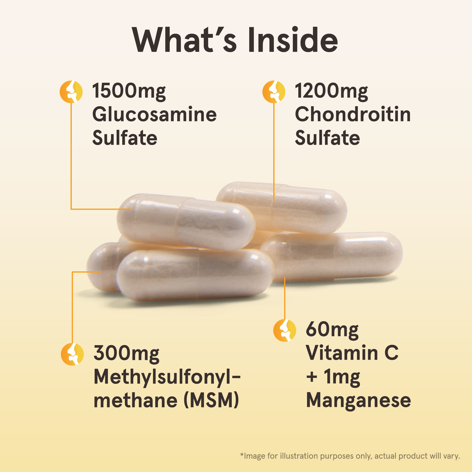 A Glicosamina + Condroitina + MSM da Jarrow Formulas® contém sulfato de glicosamina estabilizado com cloreto de potássio (KCl). A glicosamina e o sulfato de condroitina são componentes fundamentais do ácido hialurônico na cartilagem articular e no fluido sinovial. A dimetilsulfona (MSM) é uma fonte orgânica de enxofre, um mineral antioxidante e componente dos tecidos estruturais do corpo, como a cartilagem. A Vitamina C e o Manganês apoiam a síntese de colágeno e cartilagem.