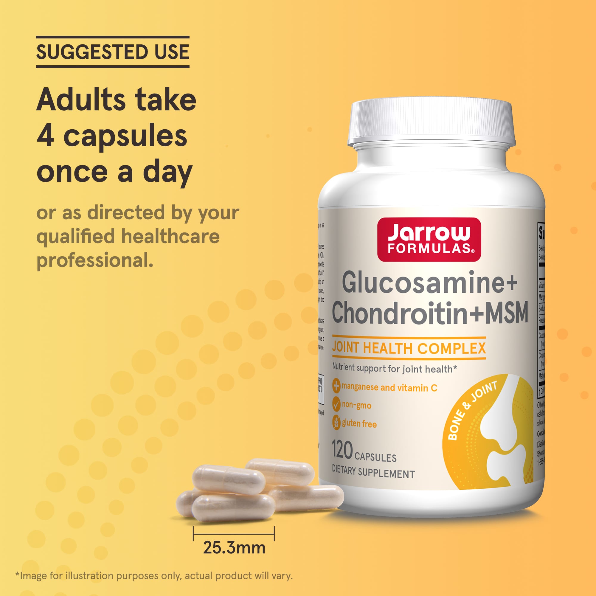 Jarrow Formulas Glicosamina + Condroitina + MSM 120 Cápsulas – Jarrow Formulas Suplementos Ossos, Articulações e Cartilagem Fórmulas de Glucosamina.
