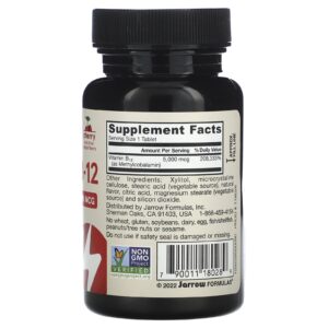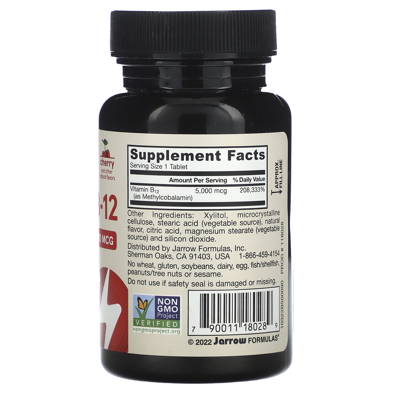 Jarrow Formulas Metil B-12 Vegano Potência Máxima Sabor Cereja 5.000 mcg 90 Comprimidos Mastigáveis – Jarrow Formulas Suplementos Vitaminas Vitamina B Vitamina B12 (Cobalamina).