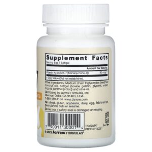 Jarrow Formulas MK-7 90 mcg 60 Cápsulas Softgel – Jarrow Formulas Suplementos Vitaminas Vitamina K Vitamina K2 MK-7.