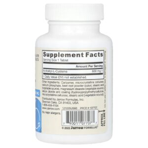Jarrow Formulas, NAC Sustain Vegano, 600 mg, 60 Comprimidos – Jarrow Formulas Suplementos Antioxidantes N-Acetil Cisteína (NAC).