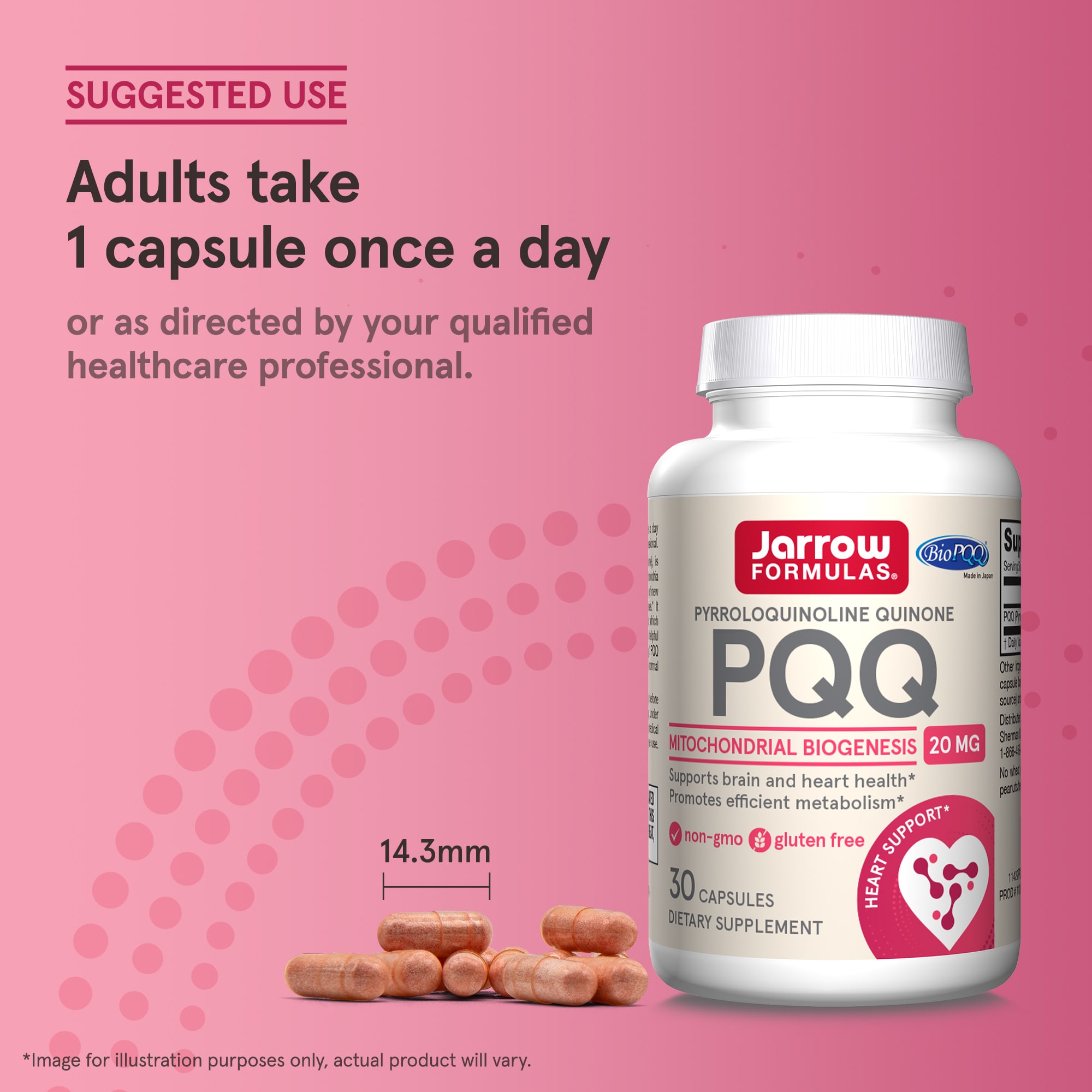 Jarrow Formulas® PQQ (pirroloquinolina quinona) é um cofator enzimático que ajuda a proteger as mitocôndrias do estresse oxidativo e promove a criação de novas mitocôndrias, conhecidas como biogênese mitocondrial. Sua função é promover a produção de piruvato, que é a primeira etapa do metabolismo celular. A PQQ é útil para que o metabolismo eficiente produza energia celular. A PQQ também desempenha um papel no suporte à saúde do coração e à função cognitiva normal.