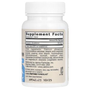 Jarrow Formulas S-Acetil L-Glutationa 100 mg 60 Comprimidos – Jarrow Formulas Suplementos Antioxidantes Glutationa.