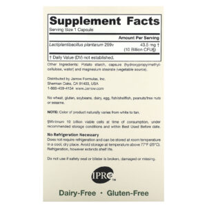 O Ideal Bowel Support 299v contém uma cepa probiótica de origem humana clinicamente documentada, L. plantarum 299v, que resiste ao ácido estomacal e aos sais biliares e demonstrou propriedades de aderência específicas para colonização da mucosa intestinal humana. L. plantarum 299v tem sido usado em estudos clínicos humanos para saúde e função intestinal.
