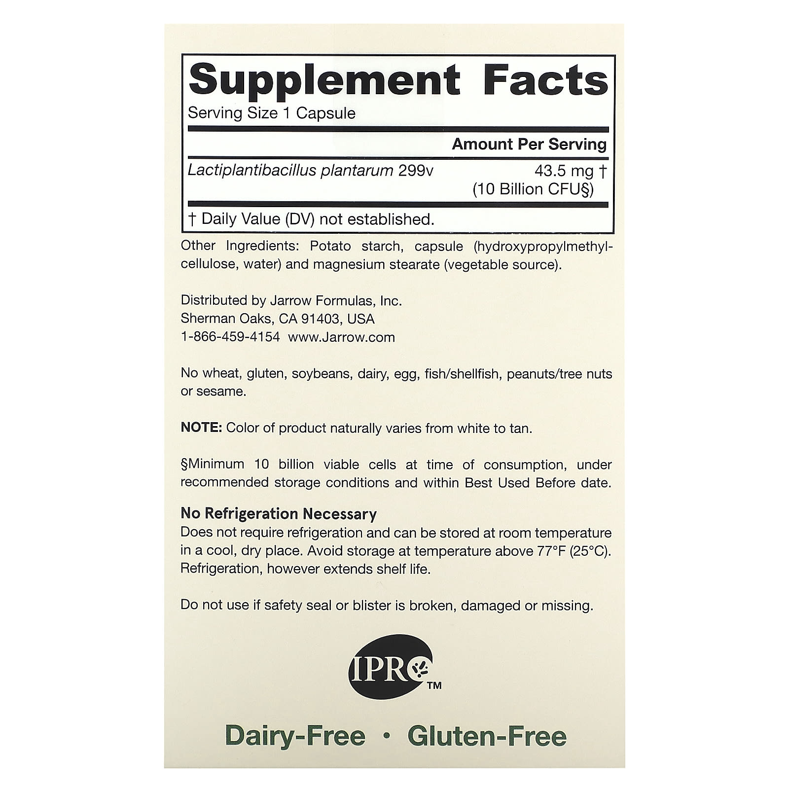 Jarrow Formulas Suporte Intestinal Ideal Vegano 10 Bilhões de UFCs 30 Cápsulas Vegetais