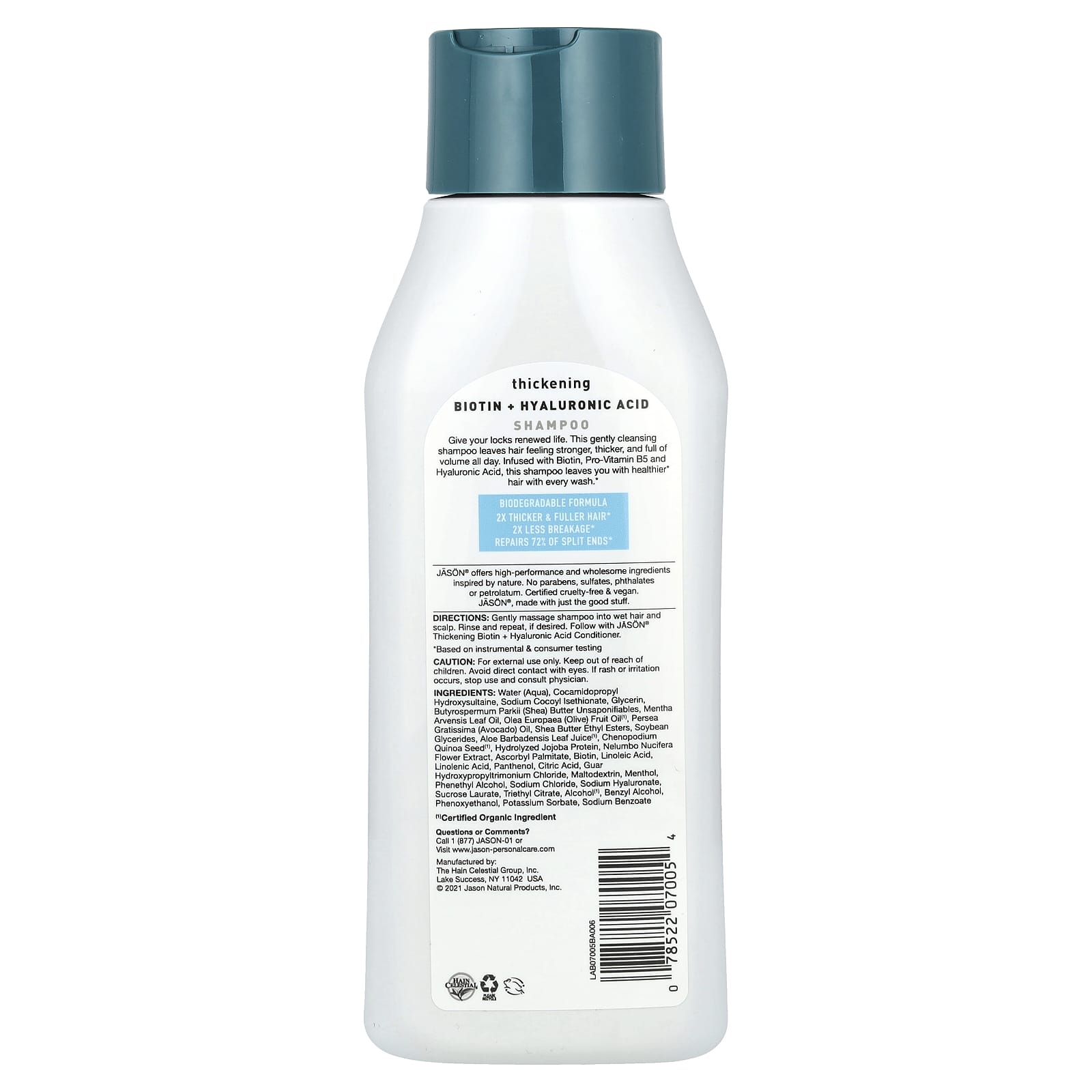 Jason Natural Biotina para Espessamento + Shampoo de Ácido Hialurônico 473 ml (16 fl oz) – Jason Natural Cuidados Pessoais Cabelos Shampoo.