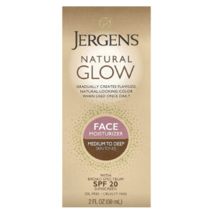 Jergens Brilho Natural Hidratante Facial FPS 20 Tons de Pele Médios a Escuros 59 ml (2 fl oz) – Jergens Cuidados Pessoais Cuidados com o Corpo Autobronzeador Beleza Hidratantes Faciais e Cremes.