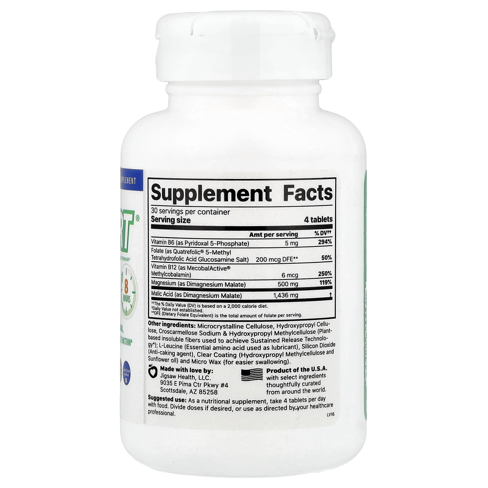 Jigsaw Health MagSRT® 120 Comprimidos – Jigsaw Health Suplementos Minerais Magnésio Malato de Magnésio.