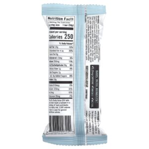 Mistura de proteínas (proteínas de soja * (proteína isolada de soja *), amido de tapioca) amendoim, proteína whey), maltitol, biscoitos sem glúten (açúcar, farinha de arroz, óleo de palma, amido de milho, farinha de aveia, cacau, contém 2% ou menos de: amido de batata, goma xantana, melaço, bicarbonato de sódio, bicarbonato de amônio), cobertura de chocolate branco (óleo de palmiste, leite, lecitina de soja), glicerina vegetal, óleo de palma ^, cobertura de chocolate (vanilina), sabor natural, guaraná, sal marinho, óleo TCM, óleo ômega 3.