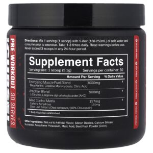 Mix 1 serving (1 scoop) with 5-8 oz (150-250 mL) of cold water and consume prior to exercise. Take 1-3 times daily. Read warnings before use. Never exceed 3 scoops in any 24-hour period.