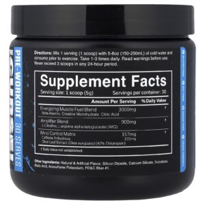 Misture 1 porção (1 colher medidora) com 150 a 250 ml (5 a 8 oz) de água fria e consuma antes do exercício. Tome de 1 a 3 vezes por dia. Leia os avisos antes de usar. Nunca exceda 3 colheres medidoras em um período de 24 horas.