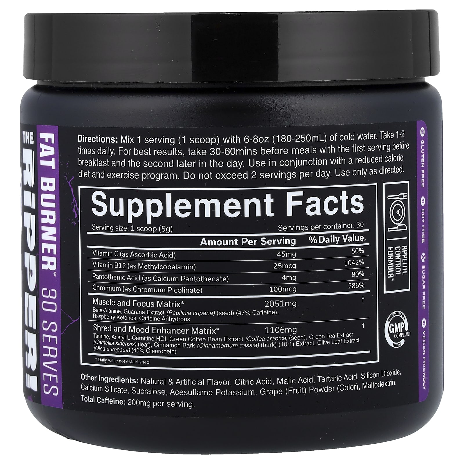 JNX Sports The Ripper! Queimador de Gordura Uva Escura 150 g (53 oz) – JNX Sports Suplementos Controle de peso Queimadores de Gordura Nutrição Esportiva Suplementos Pré-treino Pré-treino estimulante Cafeína.