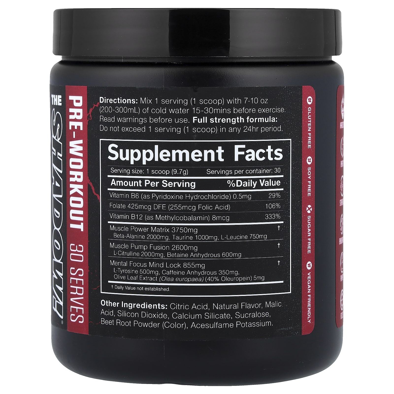 The Shadow! é um pré-treino potente apenas para quem treina pesado. Com 350 mg de cafeína por dose e 2.000 mg de Beta-alanina, The Shadow! fornece energia insuperável, intensidade hipnótica e força incontestável como nenhum outro pré-treino do mercado.