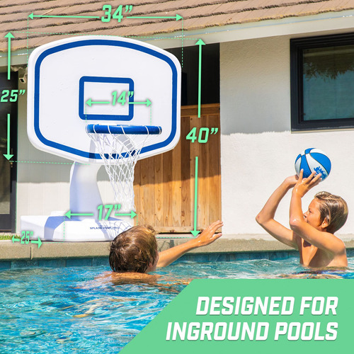 Jogo de basquete de piscina GoSports Splash Hoop, inclui cesta de basquete aquática à beira da piscina, 2 bolas e bomba Escolha seu estilo – SPLASH HOOP PRO: mergulhe nas festas de verão na piscina com o GoSports Splash Hoop PRO; inclui 1 Splash Hoop Pro, 2 bolas de basquete aquáticas infláveis e bomba de bolas para o melhor jogo de festa na piscina – MAKE A SPLASH: Leve a emocionante ação do basquete da quadra para a sinuca e divirta-se como os profissionais com um encosto robusto de 34 polegadas x 25 polegadas e um aro de 14 polegadas especialmente projetados para resistir a jogos de sinuca – DESIGN MODERNO: abandone o aros baratos do passado e atualize com a construção robusta do Splash Hoop PRO – CONFIGURAÇÃO À BEIRA DA PISCINA: O Splash Hoop PRO apresenta uma configuração rápida e uma base pesada para uma estabilidade segura (cheia de água) que fica à beira da piscina, tornando-o uma adição rápida e fácil a qualquer piscina subterrânea para horas de diversão – MARCA DE PRIMEIRA LINHA: Leve sua diversão de verão para o próximo nível e descubra por que somos o fabricante líder de basquete à beira da piscina