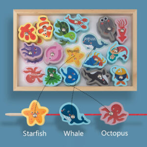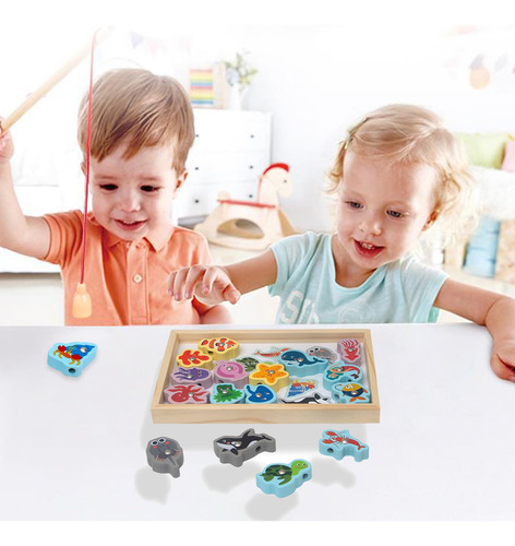 Característica: fácil de usar, conveniente de levar Adultos podem brincar com crianças Especificação: Material: madeira Cor: conforme mostrado na imagem Tamanho do produto: conforme mostrado na imagem Peso do produto: 6 onças O pacote inclui: 1* caixa de madeira de presente 18* peixe de madeira 1* postes de madeira 1* brinquedo de corda – O que você ganha: 1 caixa de presente de madeira, 18 peças de peixe de madeira, 1 peça de vara de pesca magnética de madeira, um brinquedo de corda, uma boa combinação para brincadeiras infantis – Material: feito de madeira de alta qualidade, nosso jogo de pesca em madeira para crianças pequenas é construído para resistir a brincadeiras difíceis e garantir durabilidade duradoura. As bordas lisas e a tinta não tóxica o tornam seguro para crianças pequenas – Design exclusivo: cada peixe de madeira tem seu nome em inglês no verso, o que ajudará a desenvolver as habilidades cognitivas das crianças, uma caixa de presente ajuda a armazená-los facilmente, também pode ser enviada de presente, linhas de pesca podem passar peixes pequenos, brinquedos engraçados para crianças – Brinquedo educativo de pesca: o brinquedo educativo de vara de pescar é um brinquedo educativo para meninos e meninas, que ajuda a desenvolver suas habilidades práticas e exercitar seus paciência, também ótima para um jogo de pesca em equipe, através do qual meninos e meninas podem aprender em equipe espírito e como cooperar com outras pessoas, trazendo muita diversão e cultivando suas habilidades em muitos aspectos. Presente ideal: perfeito para presentes de aniversário, prêmios de brinquedos, enchimentos de sacolas de guloseimas, presentes de Natal, prêmios de carnaval, brinquedos inovadores, enchimentos de ovos de Páscoa, etc.