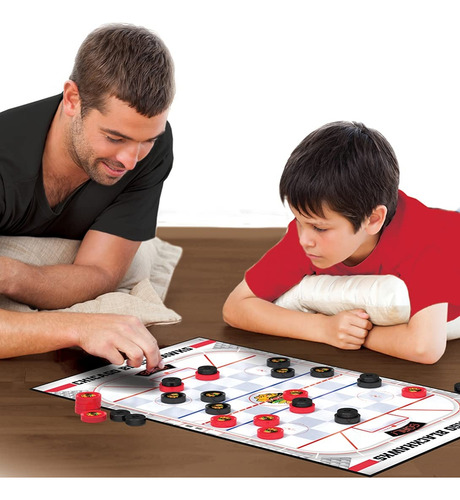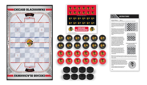 Jogo de tabuleiro de damas MasterPieces NHL Chicago Blackhawks, 13" x 21" – Produto oficialmente licenciado pela NHL – O jogo inclui 24 peças de damas, 8 peças king pieces de discos de hóquei, tabuleiro de jogo de 13 polegadas x 21 polegadas, folha de adesivos e folha de instruções – Coroe seu king checker com um disco de hóquei Chicago Blackhawks que se encaixa com segurança – Passe suas damas pela pista de hóquei em um local realista tabuleiro de xadrez com zonas finais de cores da equipe