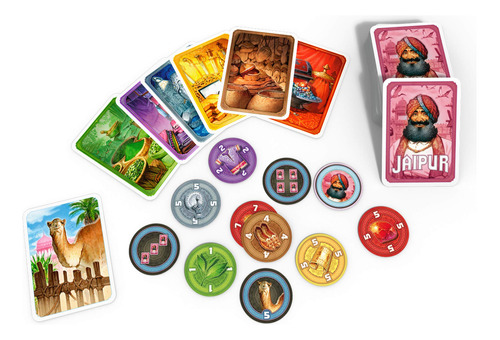 Jogo de tabuleiro de Jaipur (nova edição) – Duelo de comerciantes em ritmo acelerado! Negociação estratégica e jogabilidade de mercado para crianças e adultos, maiores de 10 anos, 2 jogadores, 30 minutos de tempo de jogo, feito por Space Cowboys – JOGO DE NEGOCIAÇÃO SUTIL: Em Jaipur, os jogadores assumem o papel de dois dos comerciantes mais poderosos da cidade que buscam se tornar negociantes pessoais dos marajás acumulando mais riquezas do que seus oponentes. Esta nova edição apresenta uma moeda metálica colecionável exclusiva. – JOGO DE ESTRATÉGIA: Colete e troque mercadorias no mercado e depois venda-as por rúpias. Organize uma venda maior para receber uma recompensa. Os camelos não têm valor de venda, mas são muito úteis para negociar, especialmente quando você quer muitos produtos do mercado. – JOGO COMPETITIVO PARA DOIS JOGADORES: Supere seu oponente para obter o favor do marajá. No final de cada rodada, o trader mais rico recebe um Selo de Excelência. O primeiro jogador a coletar 2 Selos de Excelência vence o jogo. – FÁCIL DE APRENDER: Combinando estratégia e sorte, Jaipur é um jogo rápido que é simples de aprender e oferece muita profundidade a jogadores dedicados. – NÚMERO DE JOGADORES E TEMPO MÉDIO DE JOGO: Este jogo de tabuleiro para adultos e famílias foi projetado para 2 jogadores e é adequado para maiores de 10 anos. O tempo médio de jogo é de 30 minutos.