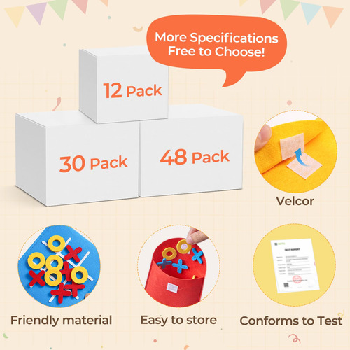 Tic Tac Toe (pacote a granel com 48) — Pacote a granel de jogos Tic Tac Toe. Inclui 48 mini tábuas de tic tac toe de feltro em cada pacote. Cada uma mede 4,8 x 4,8 polegadas e inclui 5 cores coloridas X e 5 O — Embalagem individual e multicolorida. Cada bolsa também inclui peças de jogo coloridas diferentes para tornar nossos filhos mais interessantes de jogar – Material duradouro e design portátil: a versão em feltro do jogo tic tac toe é melhor para as crianças brincarem. Além disso, com o design portátil, as crianças podem guardar as peças do jogo na sacola depois de jogar convenientemente. Elas não perderão mais as peças do jogo! Além disso, a parte de trás da bolsa pode ser usada como tabuleiro de jogo, o que é uma diversificação única de uso. Ótimo jogo para melhorar as habilidades de pensamento das crianças: o jogo tic-tac-toe é clássico e interessante, é maravilhoso que as crianças desenvolvam sua criatividade e aprendam a conviver sozinhas com os colegas. Ao jogar um jogo de tabuleiro tic tac toe, as crianças podem treinar suas habilidades de pensamento, reflexão e estratégia – Tamanho perfeito para lembrancinhas: com Tamanho pequeno de tabuleiro de jogo, o brinquedo divertido é adequado para festas de aniversário, sala de aula, namorados, coisas de Natal e festas temáticas coloridas, as crianças podem brincar tic tac toe sempre que quiserem e envie de presente