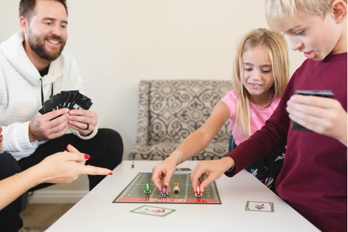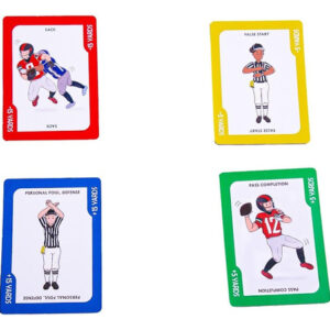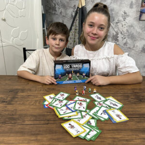 100 Yards é um divertido jogo de tabuleiro de futebol com o objetivo de ser o primeiro jogador a progredir sua peça de jogo de uma end zone para a outra end zone. Mas não é tão simples. Você pode jogar cartas que adicionarão jardas à sua peça de jogo, mas os oponentes também podem jogar cartas que o atrasarão. Como jogador, você deve escolher entre progredir sua peça e desacelerar os oponentes. O jogo de 100 jardas tem cartas de conclusão de corridas e passes, cartas de pênalti ofensivo e defensivo e cartas de baralho. 100 jardas podem ser jogadas por dois a seis jogadores, o que o torna o jogo familiar perfeito. Que comecem os momentos de diversão! – QUALQUER UM PODE JOGAR: 100 Yards foi projetado para crianças, mas descobrimos que é amado por pessoas de todas as idades. Este jogo é ótimo para manter seus filhos acordados e engajados! 100 jardas são recomendadas para maiores de 6 anos, crianças mais velhas (e até adultos). – A CAIXA DE JOGO INCLUI 60 CARTAS DE BARALHO E 6 PEÇAS DE JOGO: A caixa de jogo de 100 jardas tem 60 cartas para jogar e 6 peças de jogo exclusivas – FÁCIL DE APRENDER: 100 jardas levam menos de 5 minutos para aprender. O objetivo é simples: derrotar outros jogadores até a linha de 100 jardas (End Zone). Um jogo completo dura de 15 a 20 minutos, mas as pessoas geralmente acabam jogando por muito mais tempo, seja para revanche ou para conquistar uma dinastia. O jogo envolve adição e subtração simples com uma estratégia leve. – FAMILY GAME NIGHT: 100 Yards é o complemento perfeito para sua noite de jogos em família, especialmente se você tiver uma ampla faixa etária de crianças de 6 anos ou mais a adolescentes. Jogadores e pais podem competir entre si, já que 100 jardas permitem até 6 jogadores por jogo. – DIA DO JOGO/TAIL GATE: Você está se preparando para assistir a um jogo de futebol profissional ou universitário? 100 Yards deixará toda a sua família no clima. A caixa de jogo é portátil e pode ser facilmente configurada para jogar em casa ou transportada convenientemente para outros locais. – EXCELENTE IDEIA DE PRESENTE: 100 Yards é uma adição fantástica a qualquer coleção de jogos de tabuleiro. É um presente de aniversário ou Natal divertido e distinto e é ideal para guardar coisas e como presente para a família. 100 Yards é adorado por entusiastas do futebol, adolescentes, pais, jogadores e muito mais.