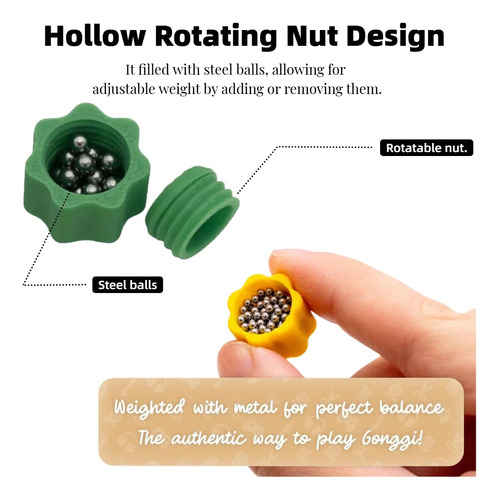 Jogo coreano Gonggi, jogo tradicional coreano de pedras reais com bolas de aço, jogos Pebble Throw e Grab Gonggi Jack – Jogabilidade coreana autêntica: experimente a diversão clássica coreana de coordenação mão-olho! Este conjunto de 5 peças replica as regras tradicionais do Gonggi para desafios de arremesso, captura e pontuação – perfeito para noites de jogos em família ou atividades de desenvolvimento de habilidades. – Peso e durabilidade da bola de aço: a construção premium em plástico com esferas de aço embutidas oferece um peso satisfatório (20% mais pesado que os conjuntos padrão) para arremessos precisos, resistindo a rachaduras ou lascas mesmo durante partidas intensas. – Design ergonômico e seguro: cada conector de 0,8 x 0,8 x 1,2 a pedra apresenta bordas arredondadas e plástico ABS não tóxico, certificado em conformidade com ASTM/CPC. A textura fácil de manusear acomoda tanto as mãos quanto a jogabilidade de adultos. – Rastreamento visual vibrante: 5 peças distintas de cor neon (vermelho/azul/verde/amarelo/roxo) aumentam a visibilidade durante rodadas rápidas e ajudam os jogadores a identificar rapidamente sua pedra ativa. – Construção de segurança premium: feita com conchas de plástico ABS que encapsulam pesos de aço inoxidável de qualidade alimentar. O design ergonômico de 0,8 evita riscos de asfixia, enquanto as bordas lisas garantem um jogo seguro e sem preocupações para você.