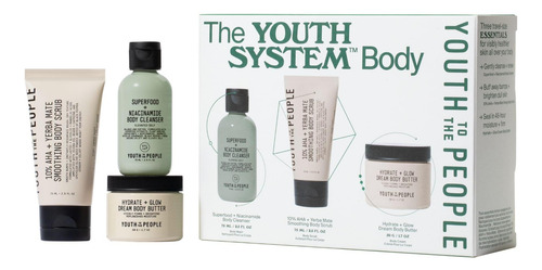 • 3 PIECE SET INCLUDES – Superfood + Niacinamide Body Cleanser with Antioxidants & Hyaluronic Acid (2.5 oz), 10% AHA + Yerba Mate Smoothing Energy Body Scrub with Upcycled Olive Seed Powder (2.5 oz), Superberry Firm + Glow Dream Body Butter with Niacinamide, Hyaluronic Acid + Antioxidants (1.7 oz)