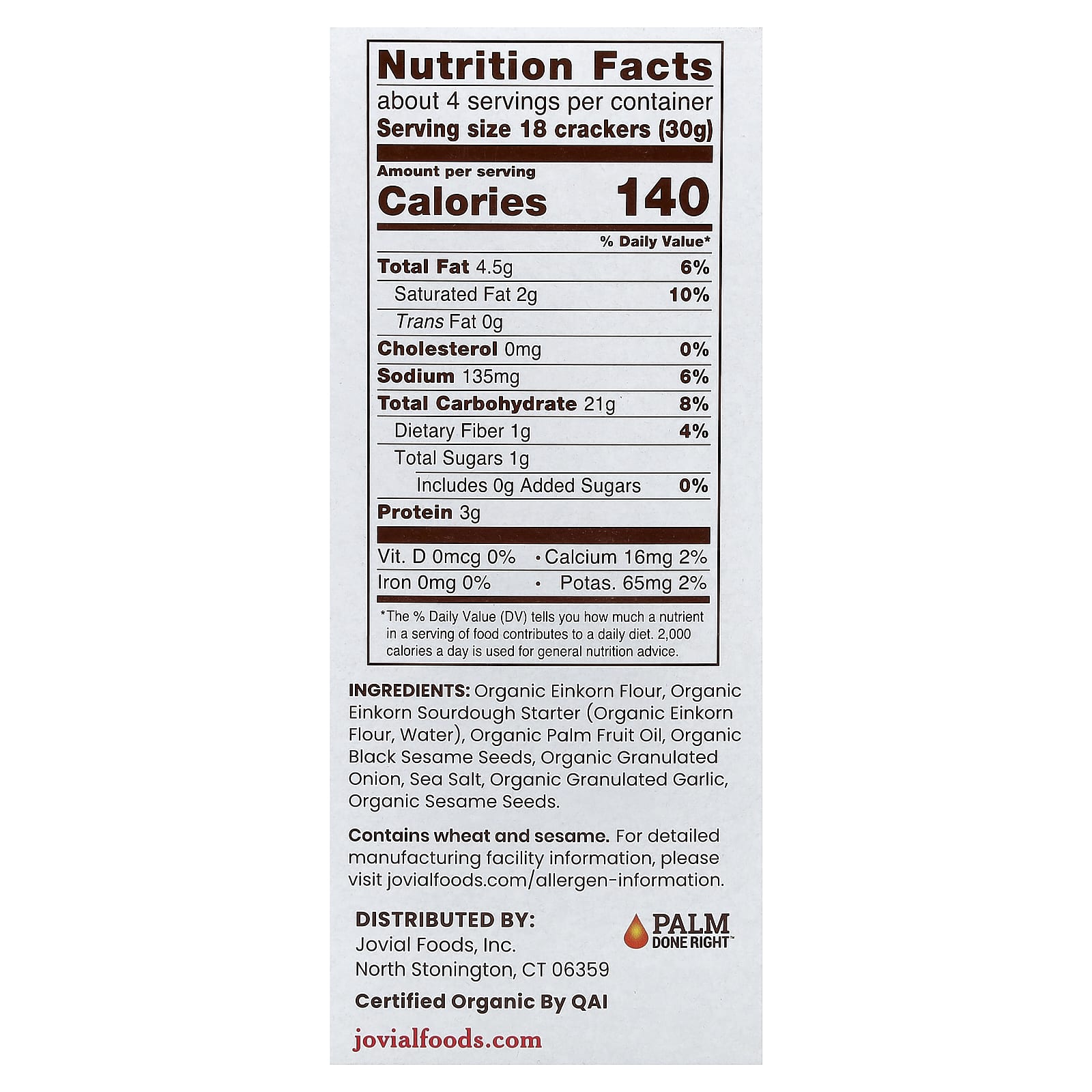 Jovial Biscoitos de Einkorn Orgânicos Tudo 45 oz (128 g) – Jovial Alimentos Petiscos e lanches Biscoitos salgados.