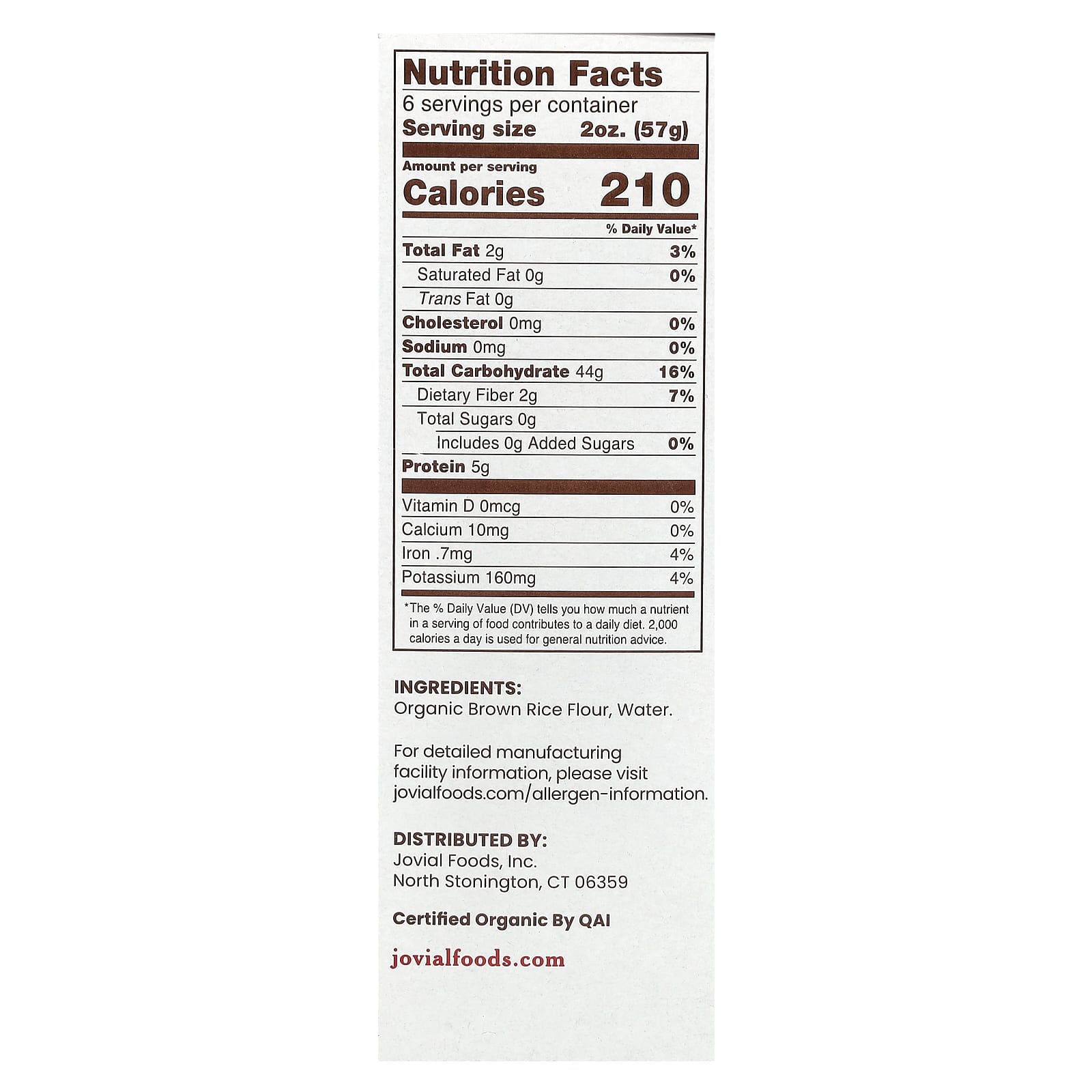 Farinha de arroz integral orgânico, água.
