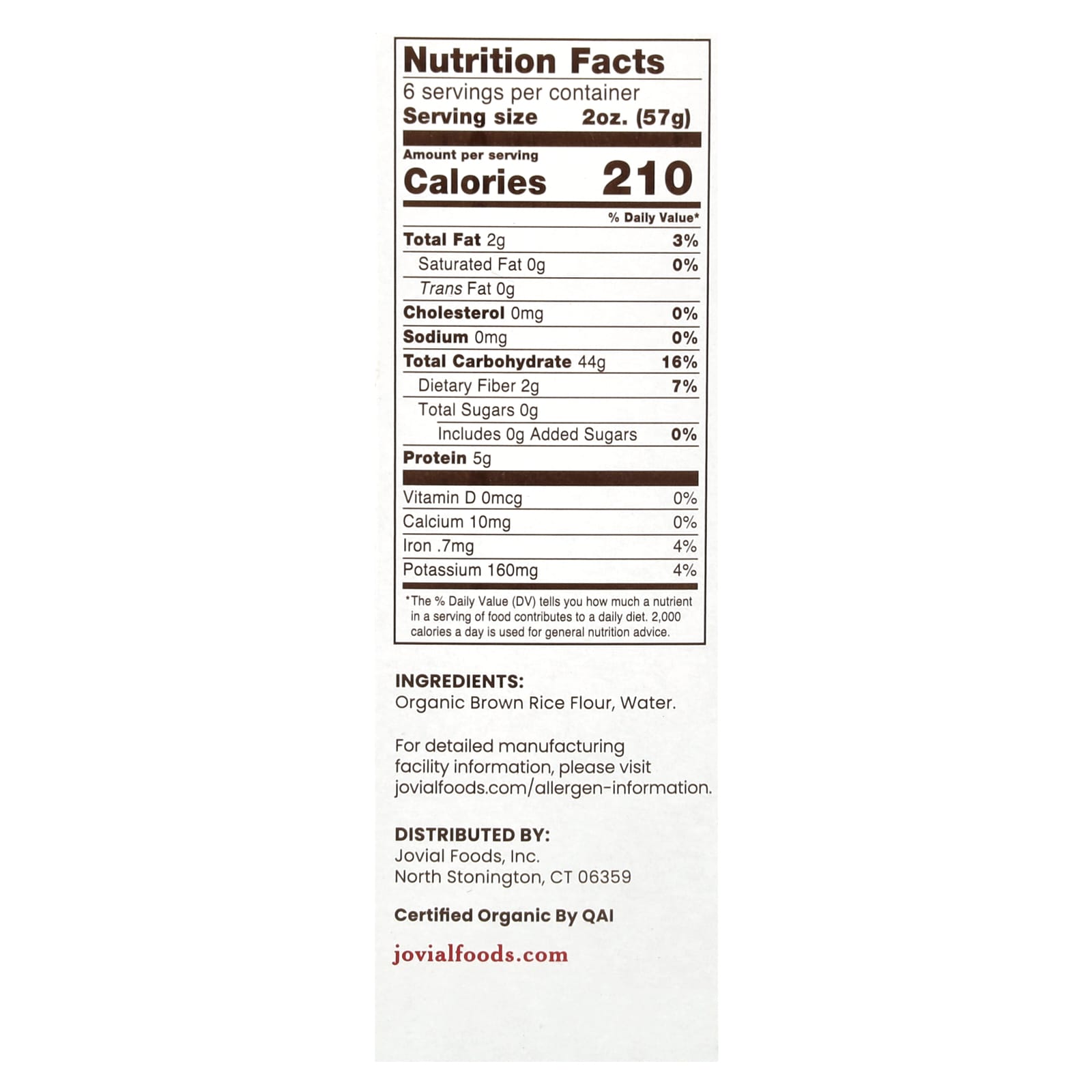 Jovial Macarrão de Arroz Integral Orgânico Conchas 340 g (12 oz) – Jovial Alimentos Alimentos embalados e prontos Massas e Macarrão Massa integral.