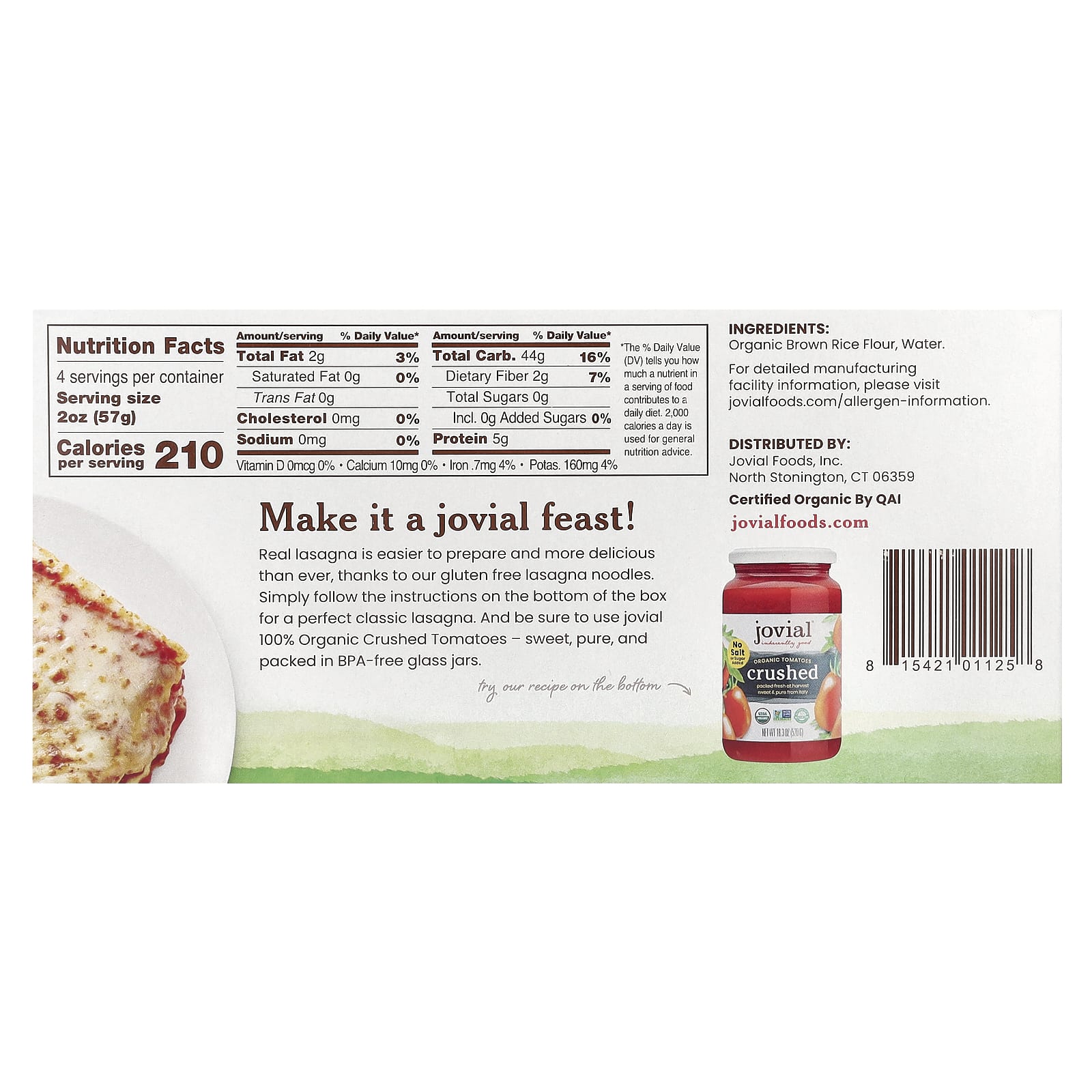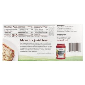 A lasanha de verdade está mais fácil de preparar e mais deliciosa do que nunca, graças aos nossos noodles de lasanha sem glúten. Basta seguir as instruções na parte inferior da caixa para obter uma lasanha clássica perfeita. E certifique-se de usar Tomates Triturados 100% Orgânicos joviais: doces, puros e embalados em potes de vidro sem BPA.