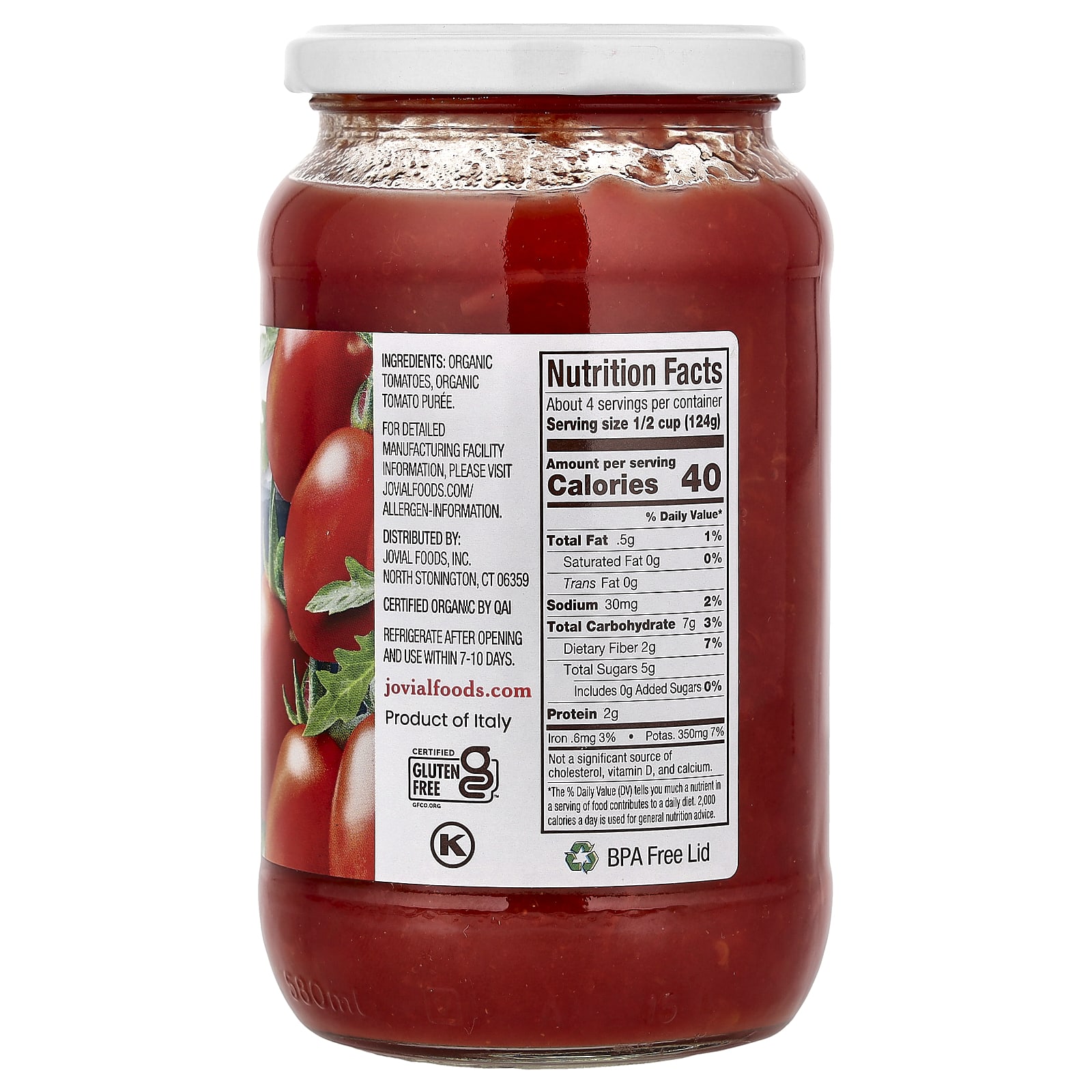 Os tomates orgânicos Jovial são cultivados em pequenas fazendas na Itália, colhidos e embalados quando perfeitamente maduros. Tão doce e delicioso que não contém aditivos, açúcar, conservantes, sal ou especiarias. Nossos potes de vidro não contêm BPA, tão claro quanto nosso compromisso com você e sua família. Desfrute do sabor dos tomates italianos maduros durante todo o ano.