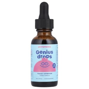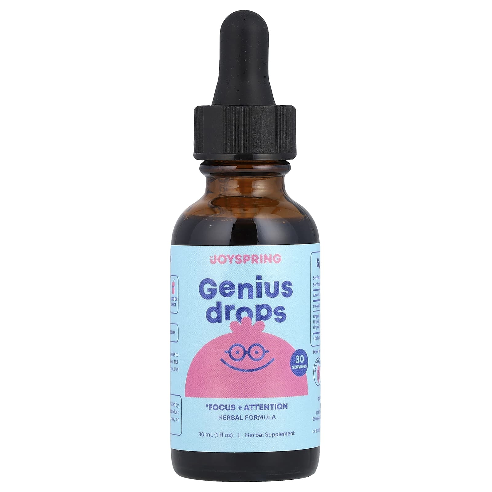 JoySpring Genius Drops Foco + Atenção 30 ml (1 fl oz) – JoySpring Bebês e Crianças Saúde Infantil Suporte para o Cérebro e Cognição Infantil Ervas Infantis.