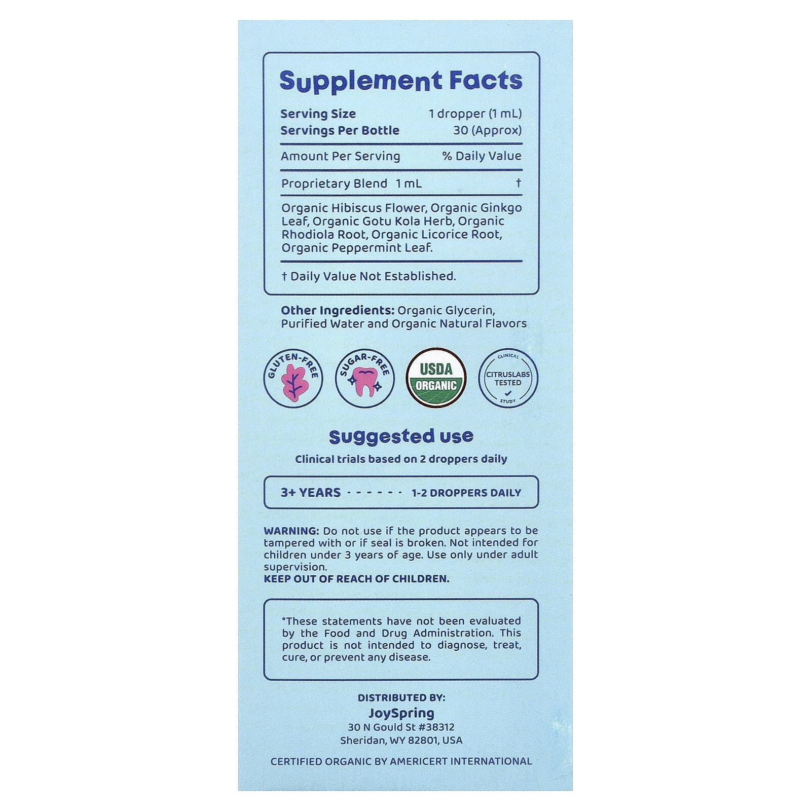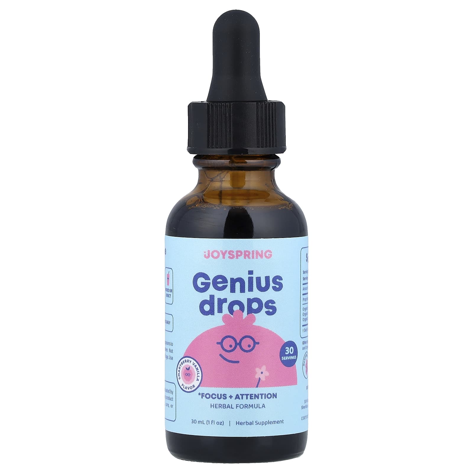 JoySpring Genius Drops Foco + Atenção Smartberry de Baunilha 30 ml (1 fl oz) – JoySpring Bebês e Crianças Saúde Infantil Suporte para o Cérebro e Cognição Infantil Ervas Infantis.