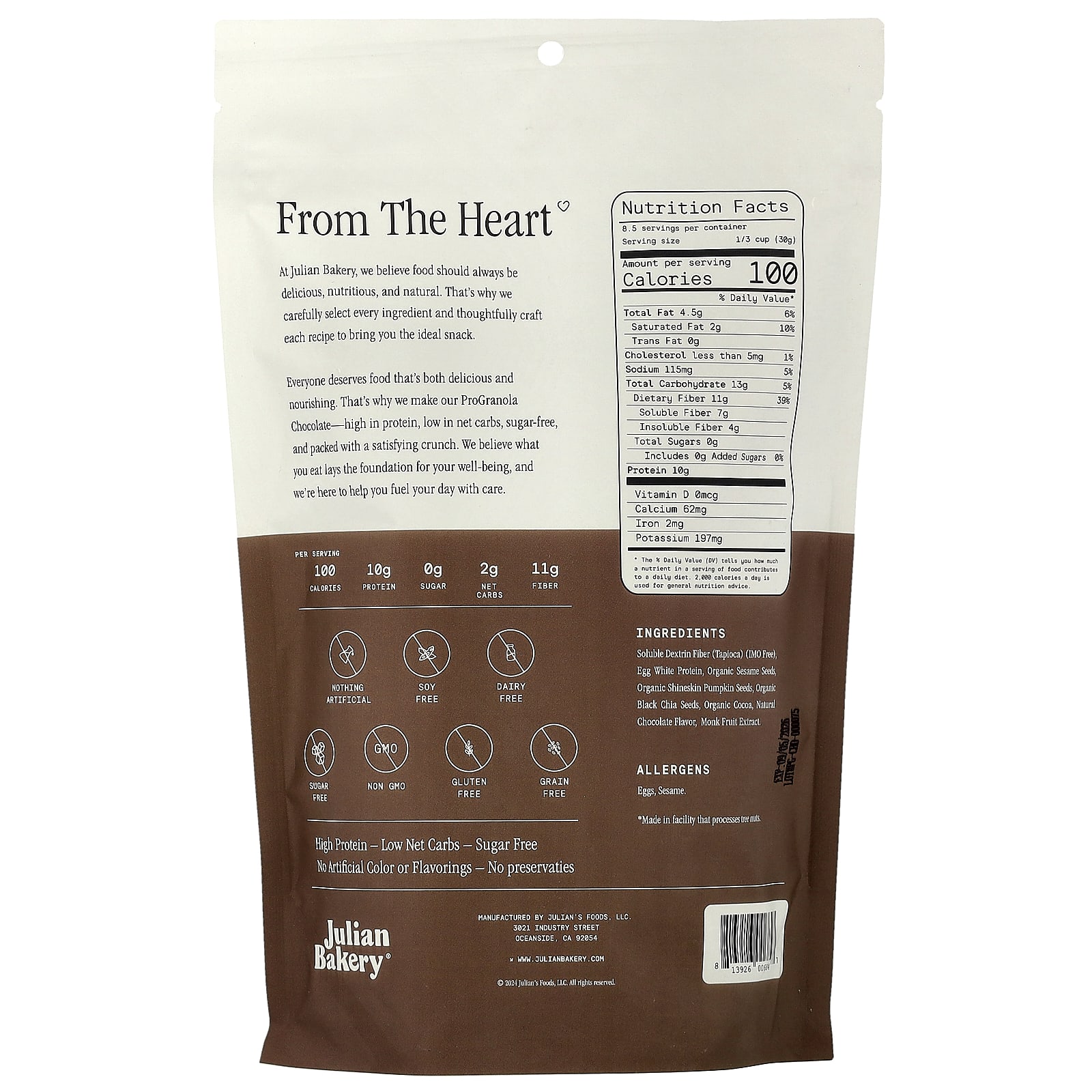 Julian Bakery Clusters de Granola Pro Chocolate 255 g (9 oz) – Julian Bakery Alimentos Cereais e alimentos para café da manhã Granola.