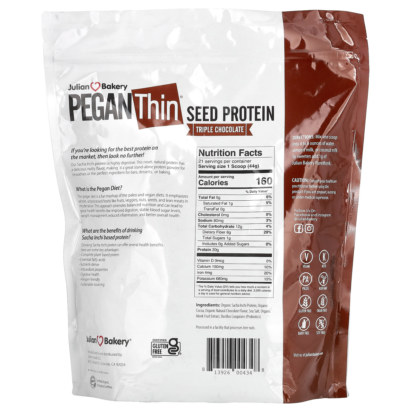 Julian Bakery Pegan Thin Proteína de Semente Chocolate Triplo 924 g (2 lb) – Julian Bakery Nutrição Esportiva Proteína Proteína Vegetal Mistura Proteica à Base de Plantas.