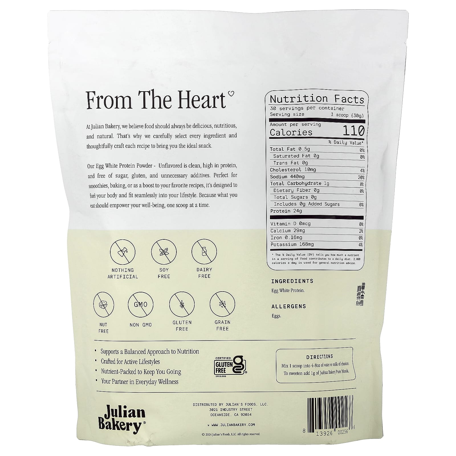 Julian Bakery Proteína em Pó da Clara de Ovo Sem Sabor 907 g (201 lb) – Julian Bakery Nutrição Esportiva Proteína Proteína Animal Proteína de ovo.