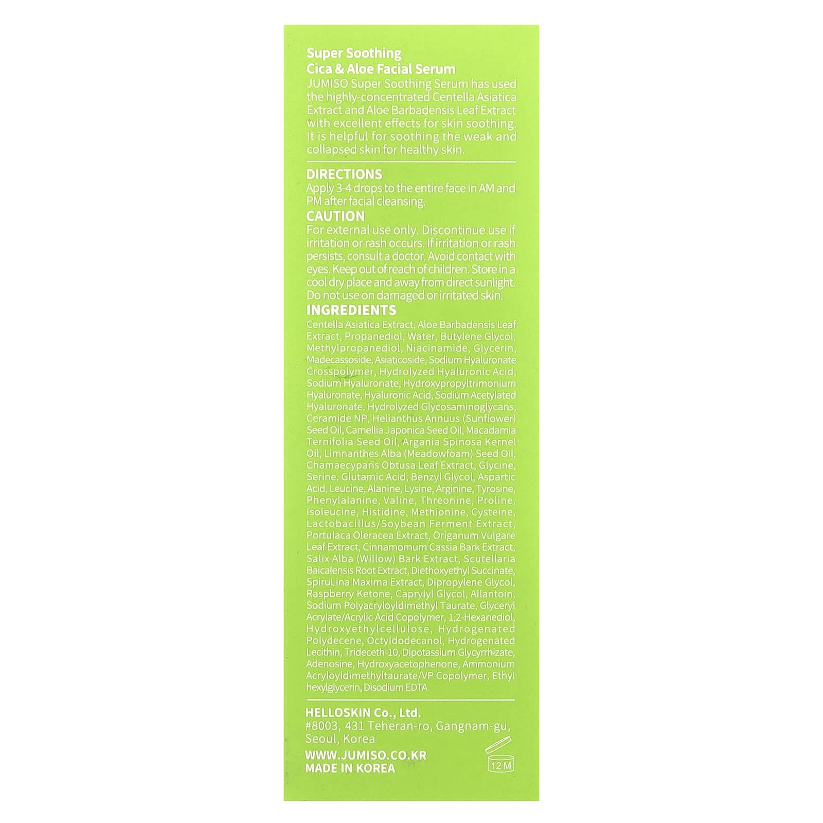 Jumiso Sérum Facial Super Calmante de Cica e Aloe 30 ml (101 fl oz) – Jumiso Beleza Tratamentos e Séruns Séruns Faciais Beleza por Ingrediente Cuidado para a pele com Centella.