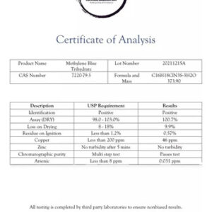 Prezado, escolha MailAmericasRegistered para fazer um pedido. Modelo de marca genérico, azul de metileno, grau farmacêutico, grau USP, terceiro, 50 ml MANTENHA SUAS FACULDADES MENTAIS EM FORMA: nosso azul de metileno especialmente formulado para humanos pode ajudar a aumentar a capacidade de produção de energia das mitocôndrias e promover o fluxo sanguíneo e o oxigênio para o cérebro. PROTEJA SUA MEMÓRIA. Este azul de metileno de grau farmacêutico contém antioxidantes que podem ajudar a prevenir a degeneração celular e proteger o cérebro contra o declínio cognitivo relacionado à idade. CONTROLE EFICAZMENTE OS SINTOMAS DA BMS: As propriedades analgésicas do nosso azul de metileno líquido aprimorado podem ajudar a aliviar os sintomas dolorosos e desconfortáveis causados pela idade. Síndrome da boca ardente. EMBALAGEM SEGURA E PRÁTICA: Este azul de metileno de grau farmacêutico vem em frascos de vidro fáceis de dispensar. Isso ajuda a preservar sua potência, que pode ser afetada negativamente pelas embalagens plásticas. PURO E POTENTE EM CADA GOTA: Nosso suplemento contém apenas azul de metileno de alta pureza de grau USP e foi testado de forma independente. Ele não contém formaldeído e atende aos padrões da Farmacopeia do Brasil. EU